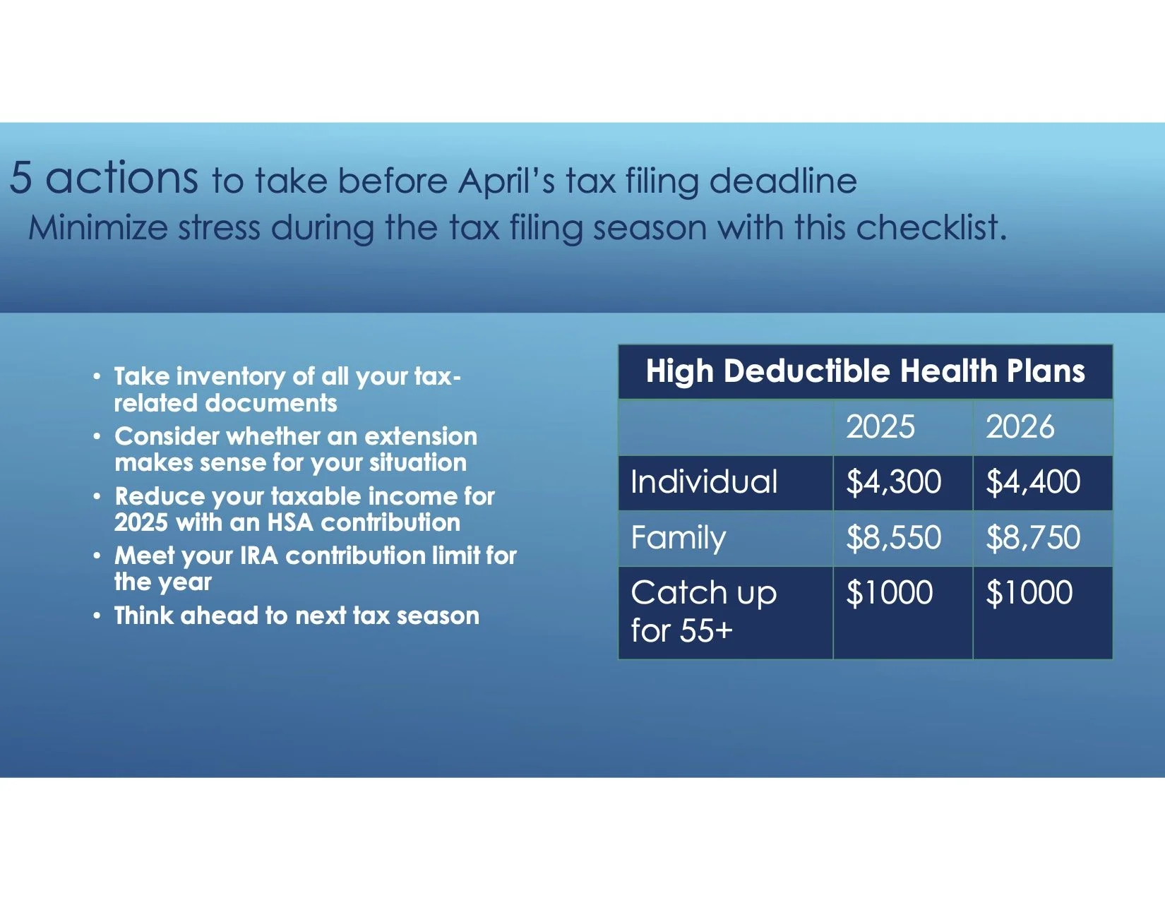 Another key focus of the presentation centered on retirement contribution limits and catch up opportunities.